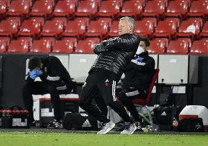 谢菲尔德联主场对阵南安普顿的比赛中,凭借泰尔斯-坎贝尔的进球,在上半场结束时以1-0领先。然而,主帅怀尔德对上半场的表现感到不满。这位58岁的教练在离场时忍不住踢了一脚滚向他的足球,结果球飞进了球员通道后面的观众席。